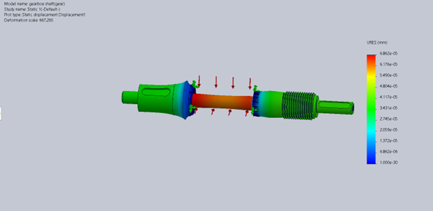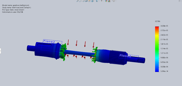 Bending and contact stresses were evaluated using standard gear design methods. The pinion experienced the highest bending stress approx. 42 ksi, which remained within allowable limits for the selected materials.