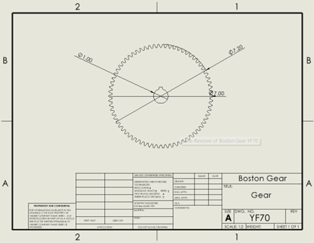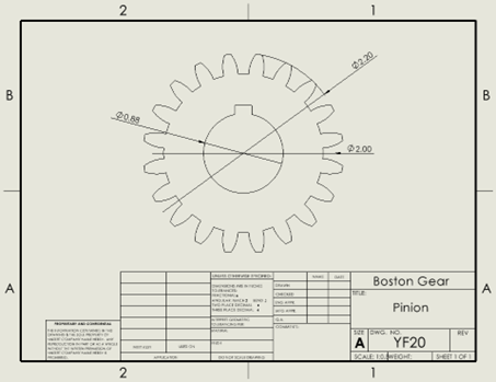 The gear pair was selected from Boston Gear catalog components to meet the required ratio while maintaining manufacturability.